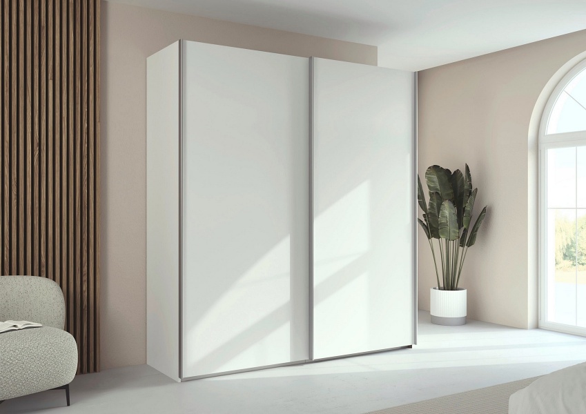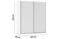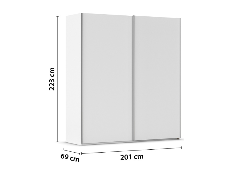 Dulap cu usi glisante TARO 201x223x69cm alb alpin, maner aluminiu