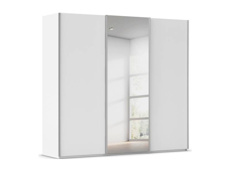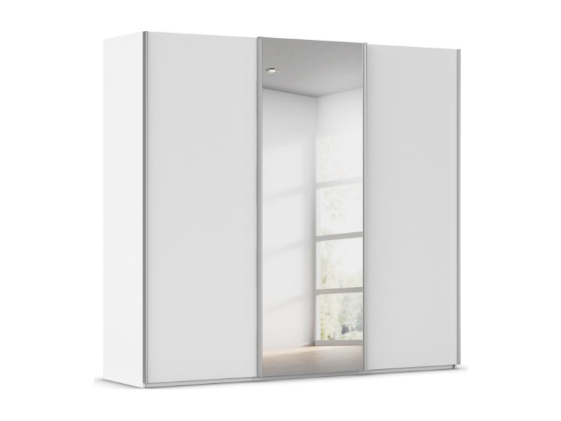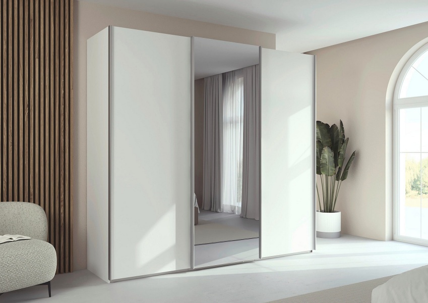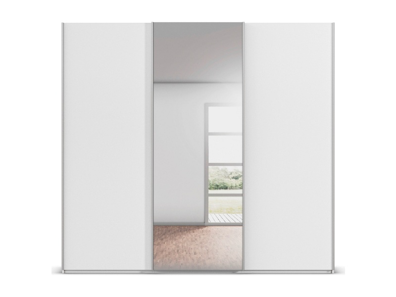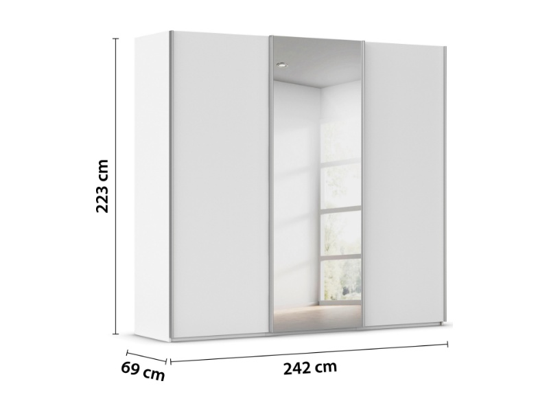Dulap cu usi glisante TARO 242x223x69cm alb alpin/ oglinda, maner aluminiu