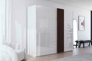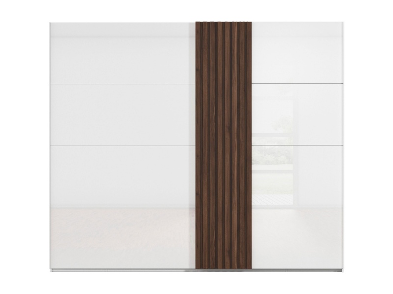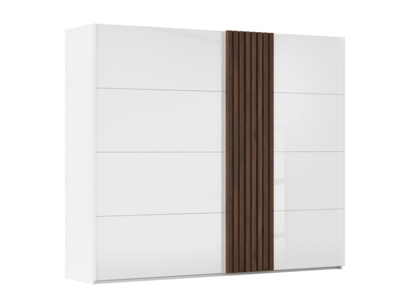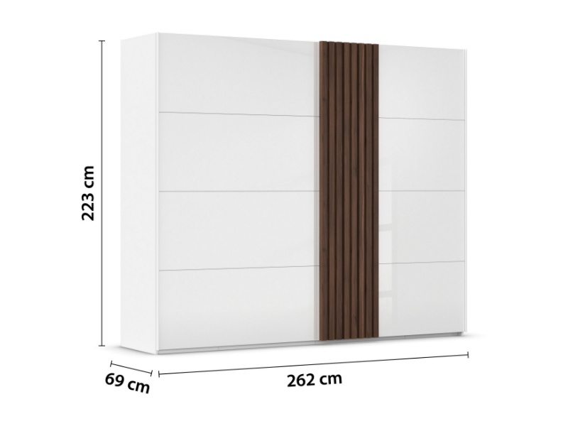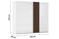 Dulap cu usi glisante TEGIO 262x223x69cm alb alpin/ sticla alba - Walnut