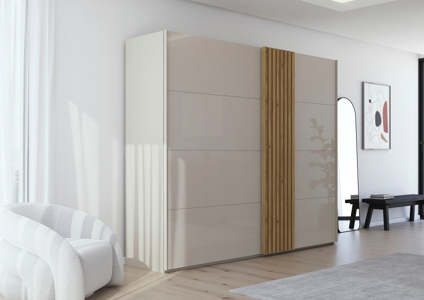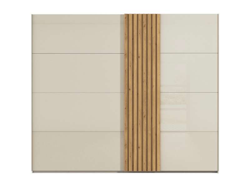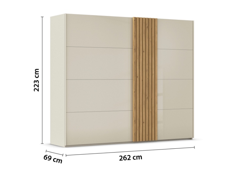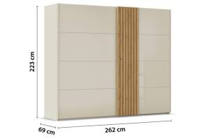 Dulap cu usi glisante TEGIO 262x223x69cm champagne mat/ sticla champagne - stejar Wild