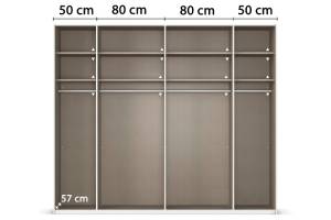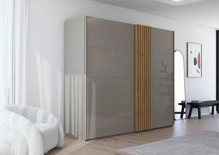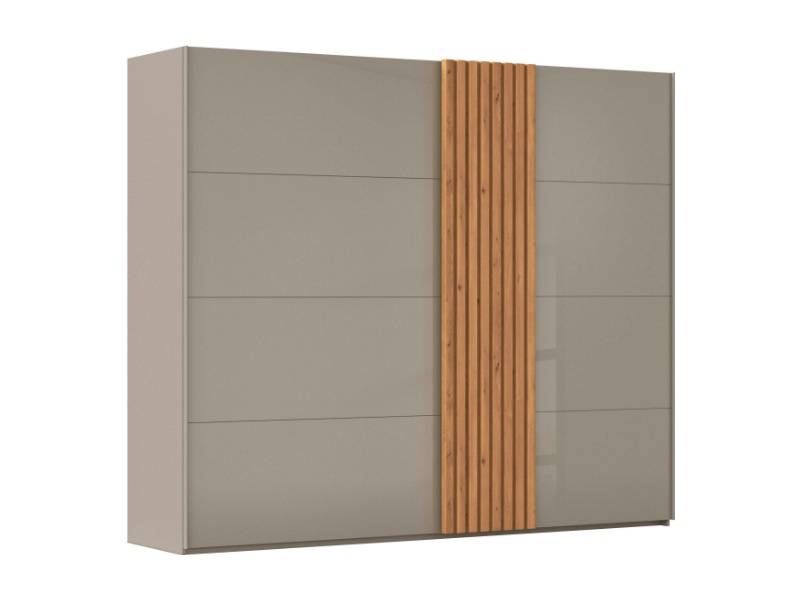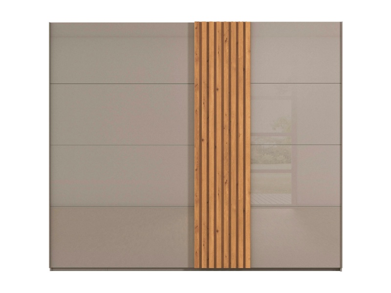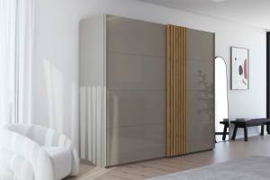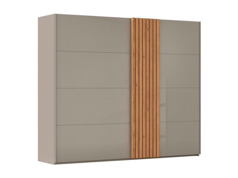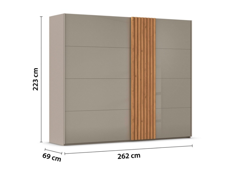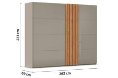 Dulap cu usi glisante TEGIO 262x223x69cm fango mat/ sticla fango- stejar Wild