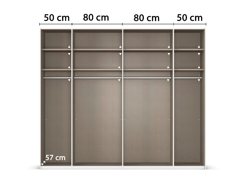 Dulapul vă pune la dispoziție un spațiu generos pentru depozitarea articolelor vestimentare, păstrându-le organizate și mereu la îndemână în dormitor.