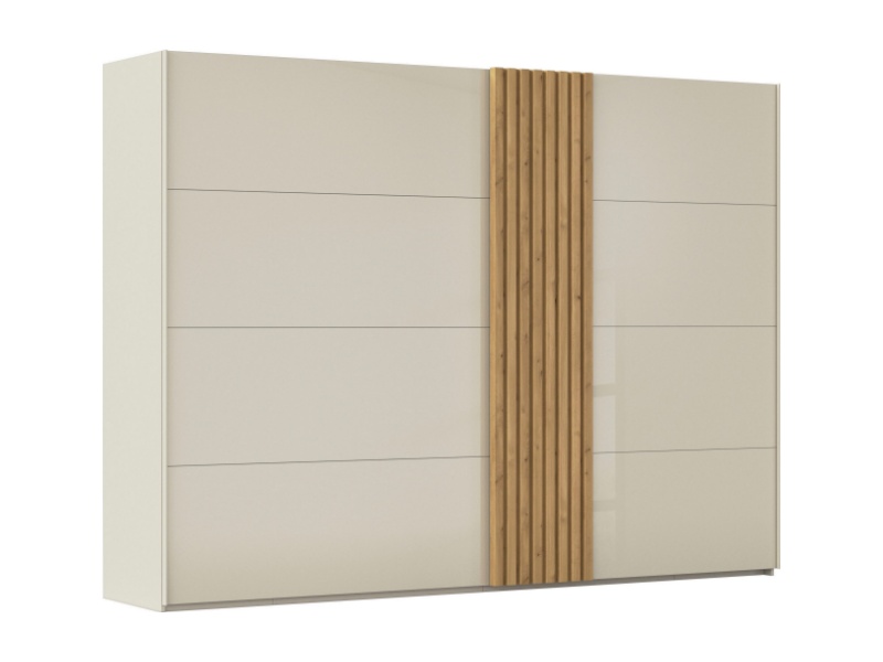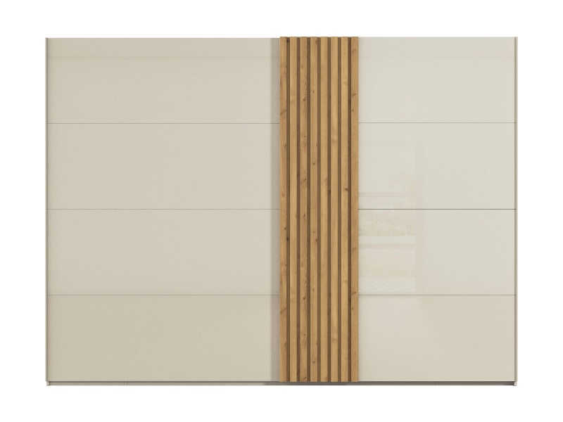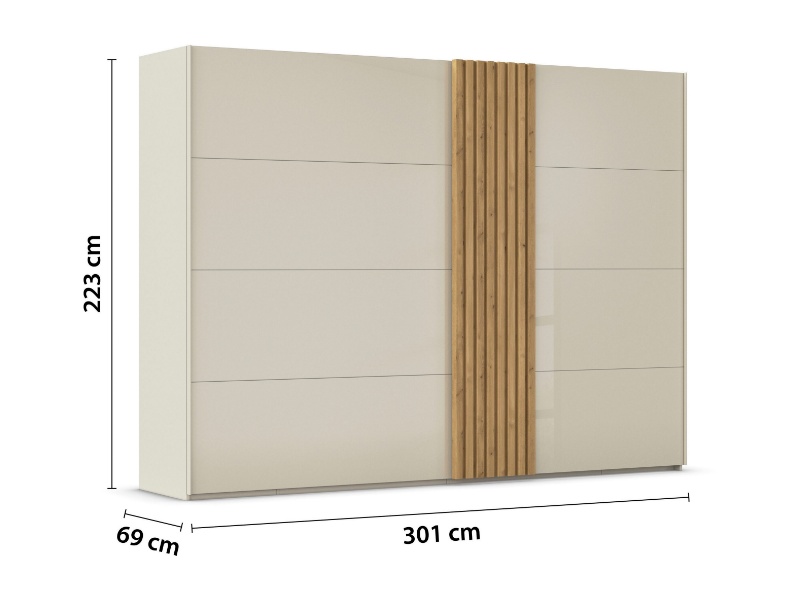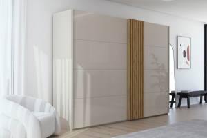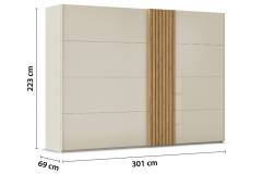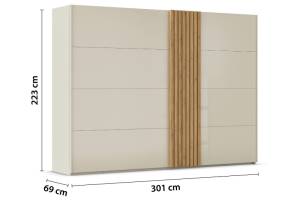 Dulap cu usi glisante TEGIO 301x223x69cm champagne mat/ sticla champagne - stejar Wild