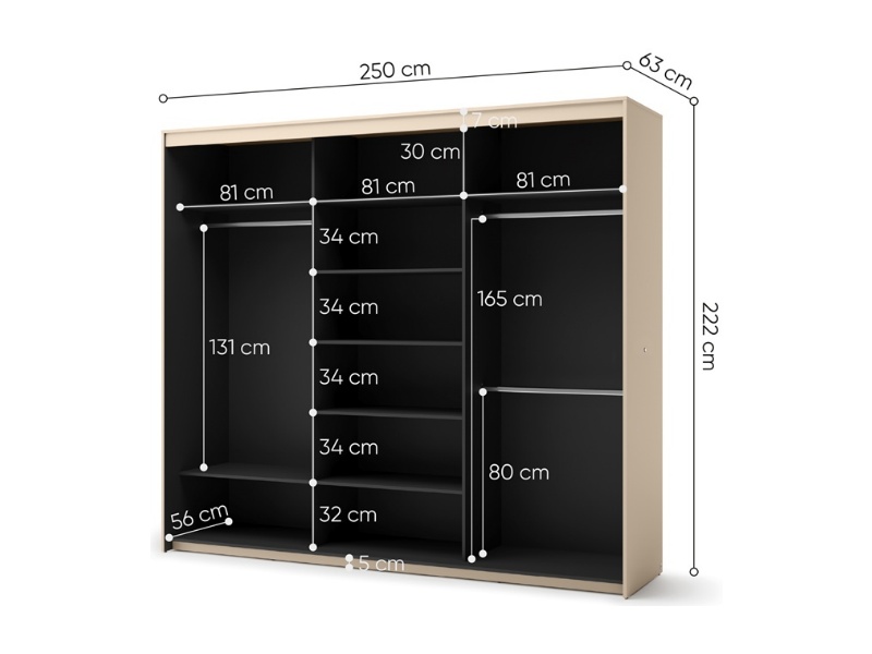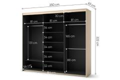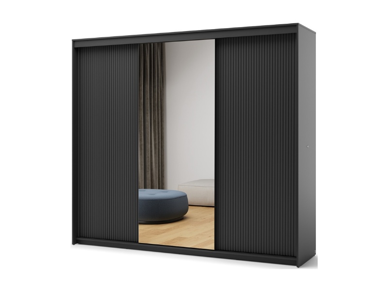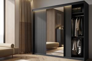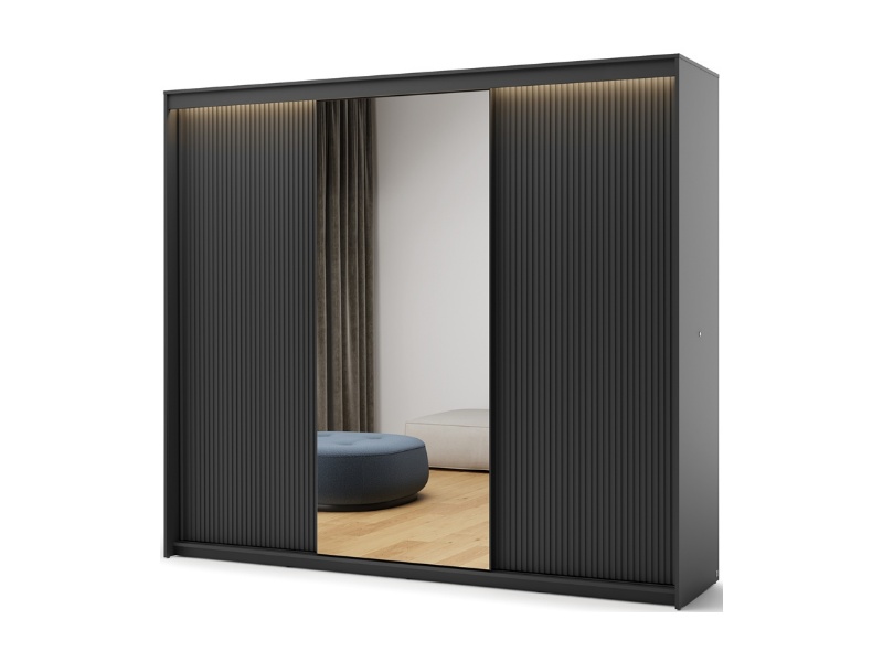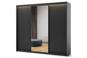 Dulap cu usi glisante TREND 250x222x63cm negru - oglinda, cu led