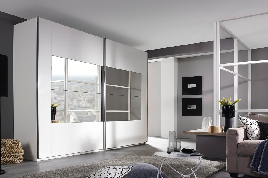 Dulap cu usi glisante X-TEND FRAME 1 271x223x68cm alb alpin/ oglinda
