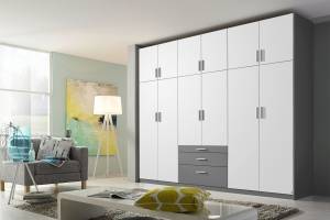 Dulap cu 12 usi cu balamale si 3 sertare HILDESHEIM EXTRA 271x229x54cm alb alpin/ gri metalic