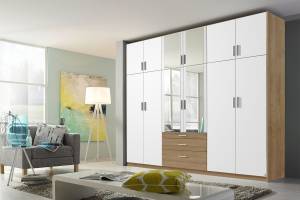 Dulap cu 12 usi cu balamale si 3 sertare HILDESHEIM EXTRA 271x229x54cm alb alpin/ sonoma - oglinda