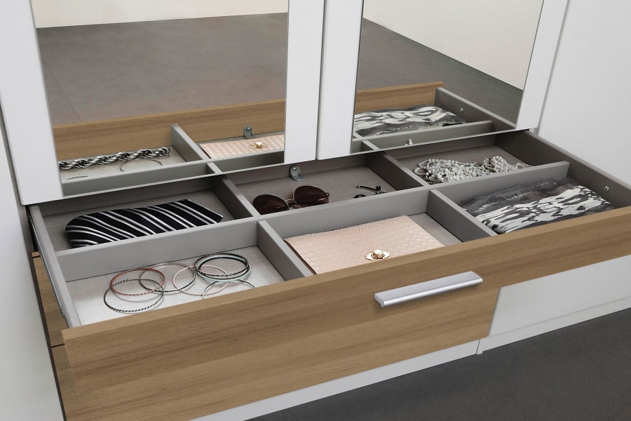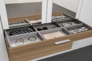 Dulapul poate fi completat cu accesorii inteligente ( sertare, polite, bare pt. umerase, inchidere soft...) care se potrivesc exact nevoilor fiecaruia.