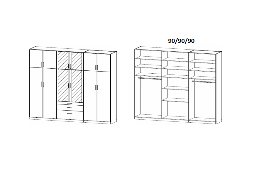 - 271 / 229 / 54 cm (12 usi + 3 sertare)
