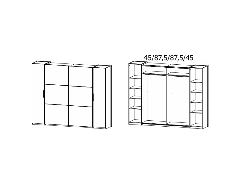 Dulap cu 2 usi cu balamale si 2 usi glisante KRONACH II 269x210x59cm alb alpin