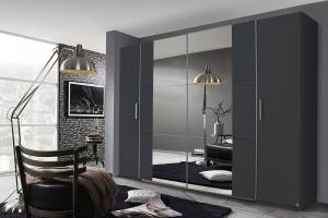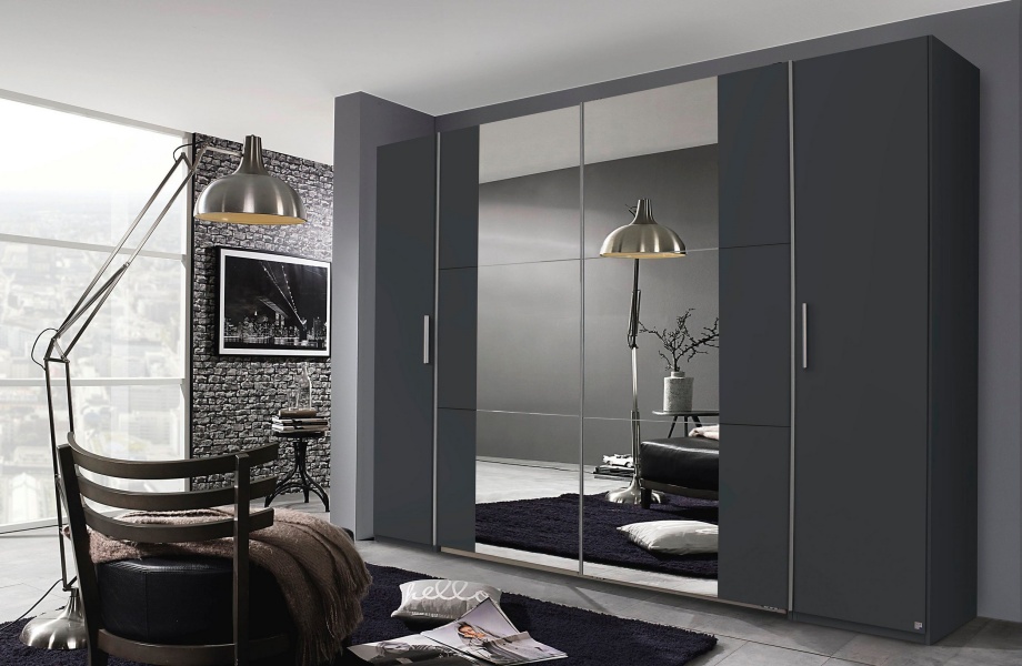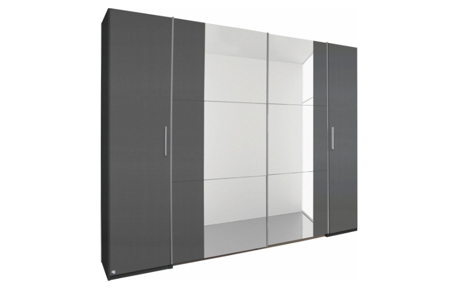 Dulap cu 2 usi cu balamale si 2 usi glisante KRONACH II 312x210x59cm gri metalic/ oglinda