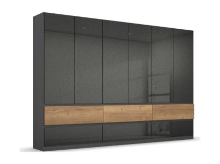 Dulap cu 3 usi cu balamale si 2 serare INVICTUS 142x226x60cm casmir/ stejar tabac, rama passepartout cu LED