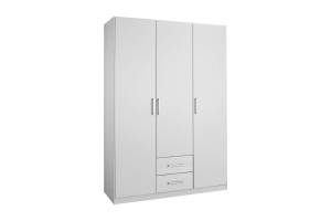 Dulap cu 3 usi cu balamale si 2 sertare ALBERO 136x197x54cm alb alpin, manere aluminiu
