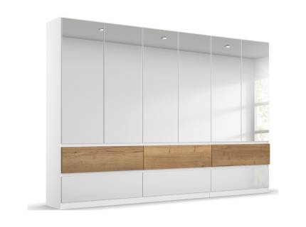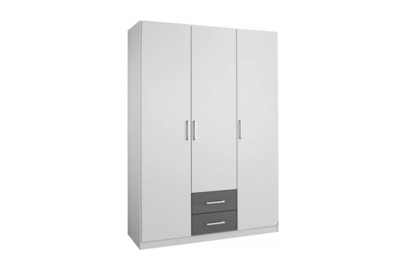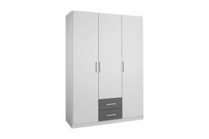 Dulap cu 3 usi cu balamale si 2 sertare ALBERO EXTRA 136x197x54cm alb alpin/ gri metalic, manere aluminiu