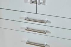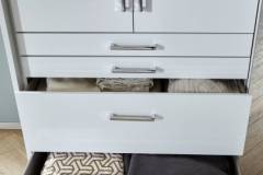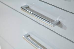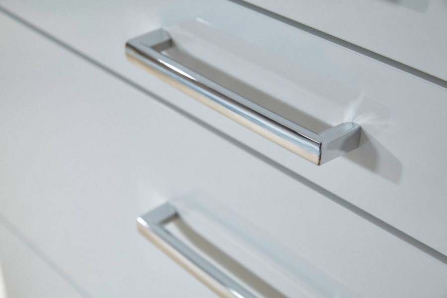 Usile si fetele sertarelor sunt din MDF lucios in nuanta alb lucios.