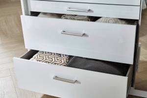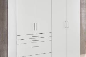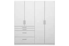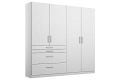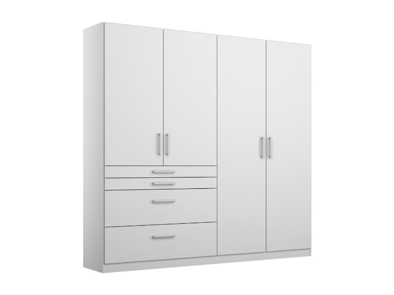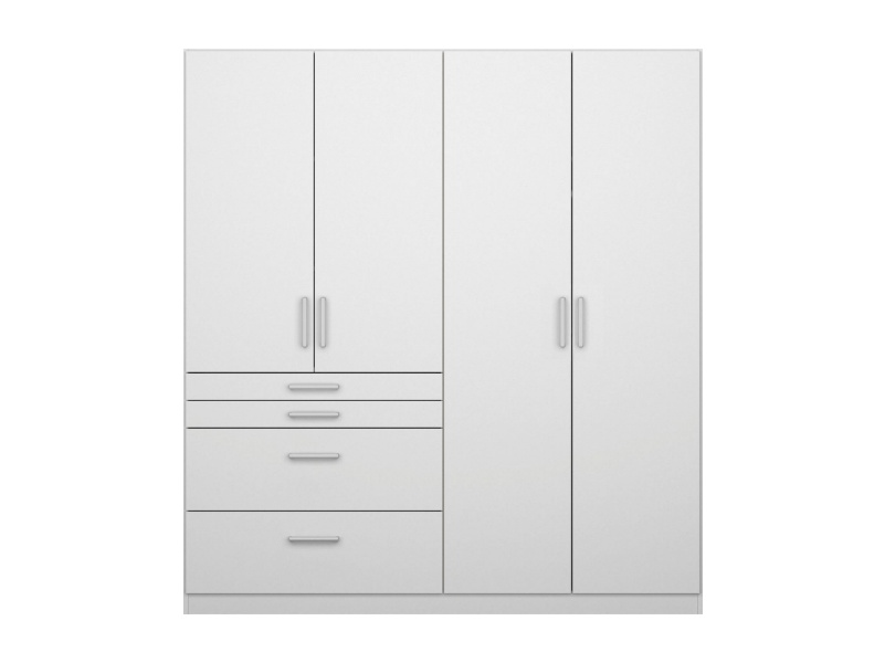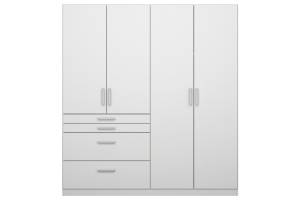 Dulap cu 4 usi cu balamale si 4 sertare HOMBURG 181x197x54cm alb alpin/ alb lucios, manere crom