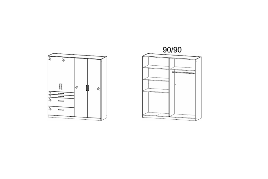 - 181 / 197 / 54 cm (4 usi + 4 sertare)
