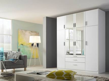 Dulap cu 4 usi cu balamale si 4 sertare PIANO WHITE 182x224x56cm alb lucios, maner crom