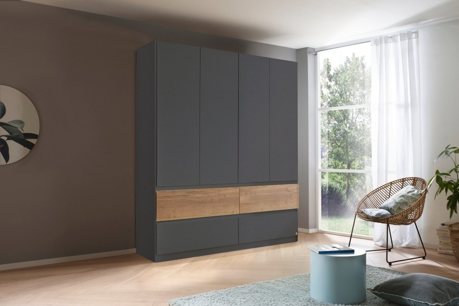 Dulap cu 4 usi cu balamale si 4 sertare WINNIPEG 181x210x56cm gri metalic/ halifax