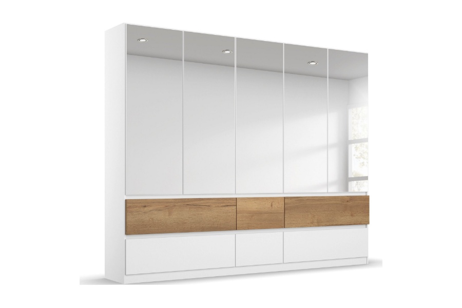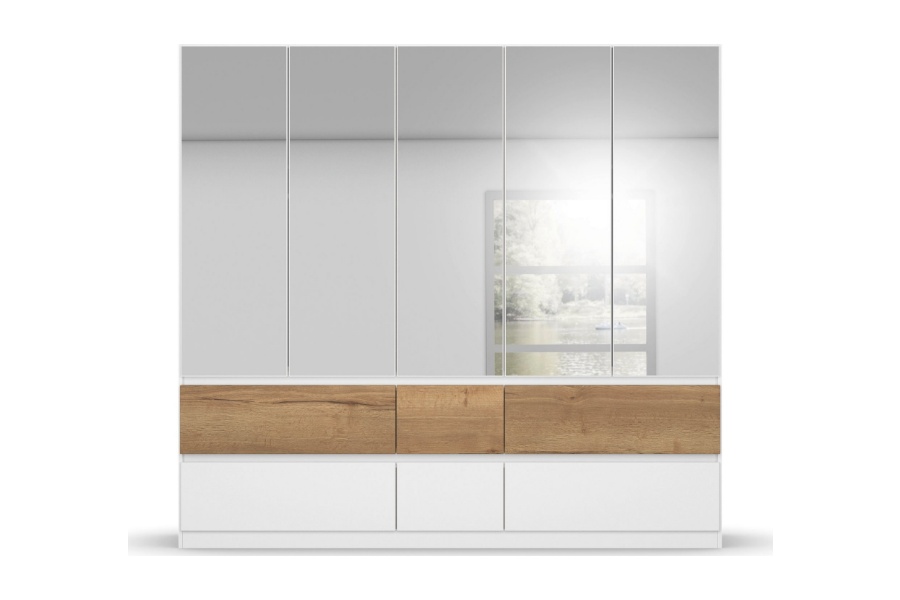 Dulap cu 5 usi cu balamale si 6 sertare WINNIPEG 226x210x56cm alb alpin/ halifax - oglinda