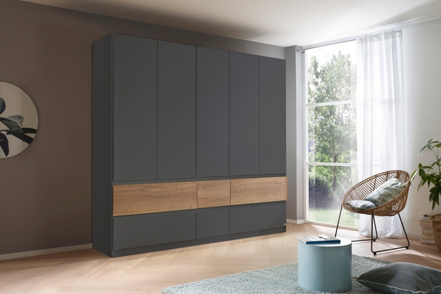 Dulap cu 5 usi cu balamale si 6 sertare WINNIPEG 226x210x56cm gri metalic/ halifax
