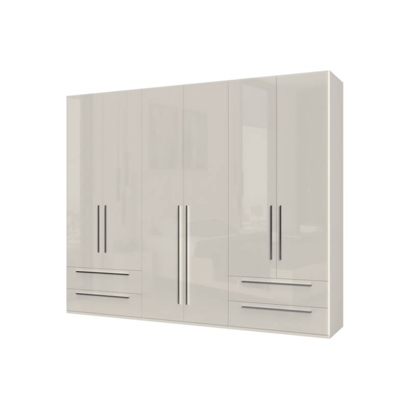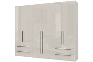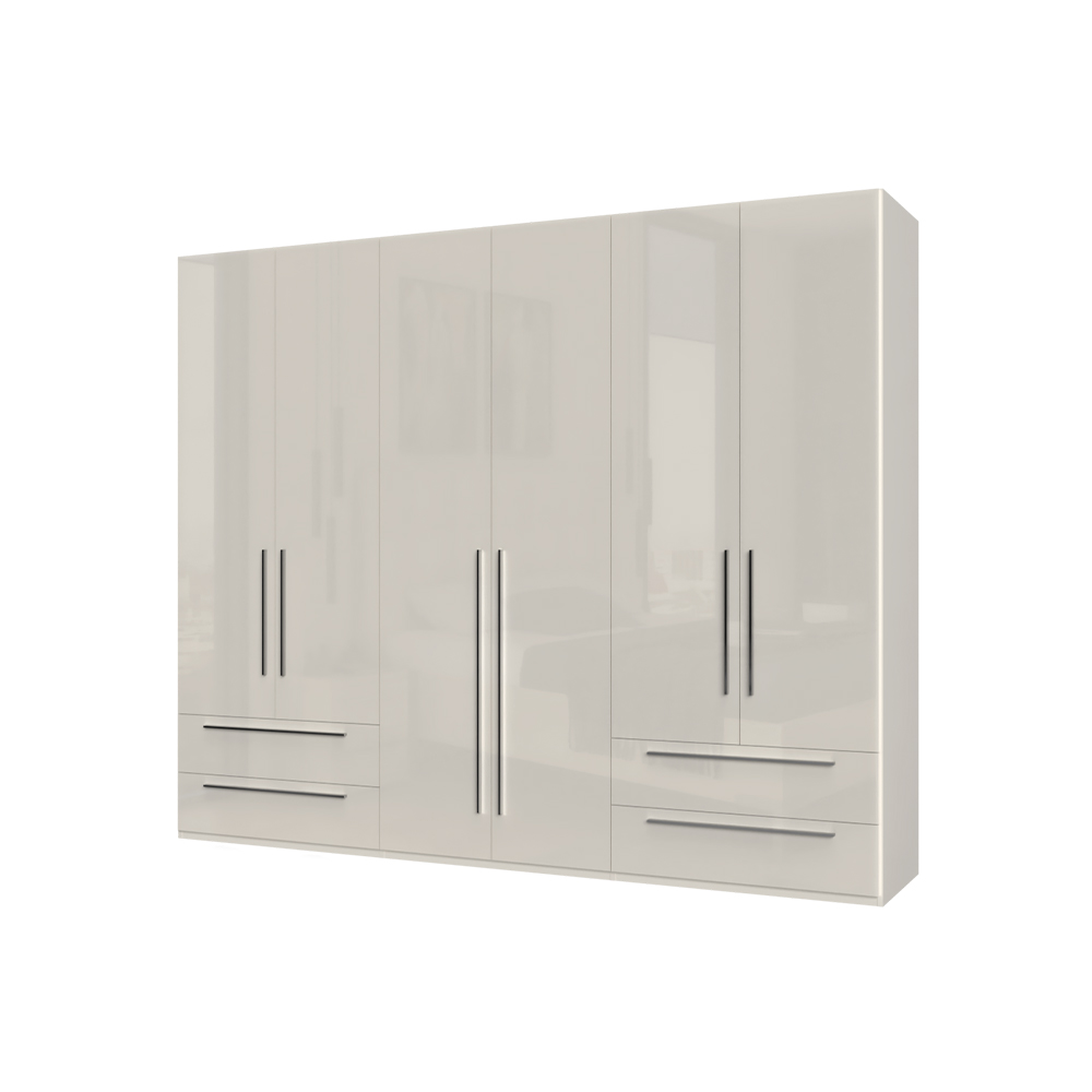 Dulap cu 6 usi cu balamale si 4 sertare PIANO BEIGE 272x224x56cm bej lucios, manere crom