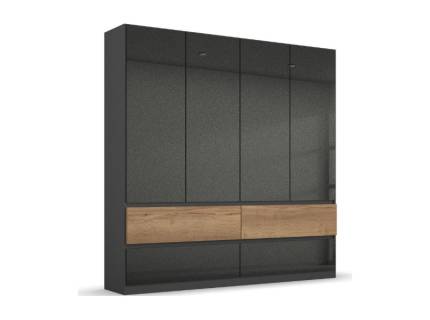 Dulap cu 6 usi cu balamale si 4 sertare PIANO BEIGE 272x224x56cm bej lucios, manere crom