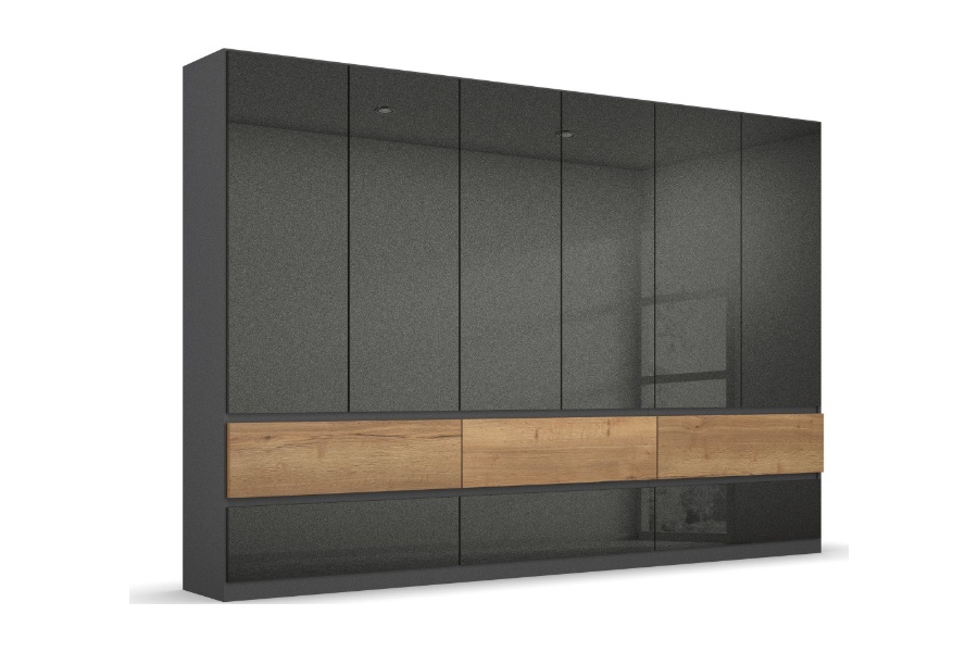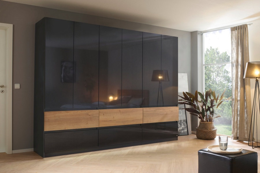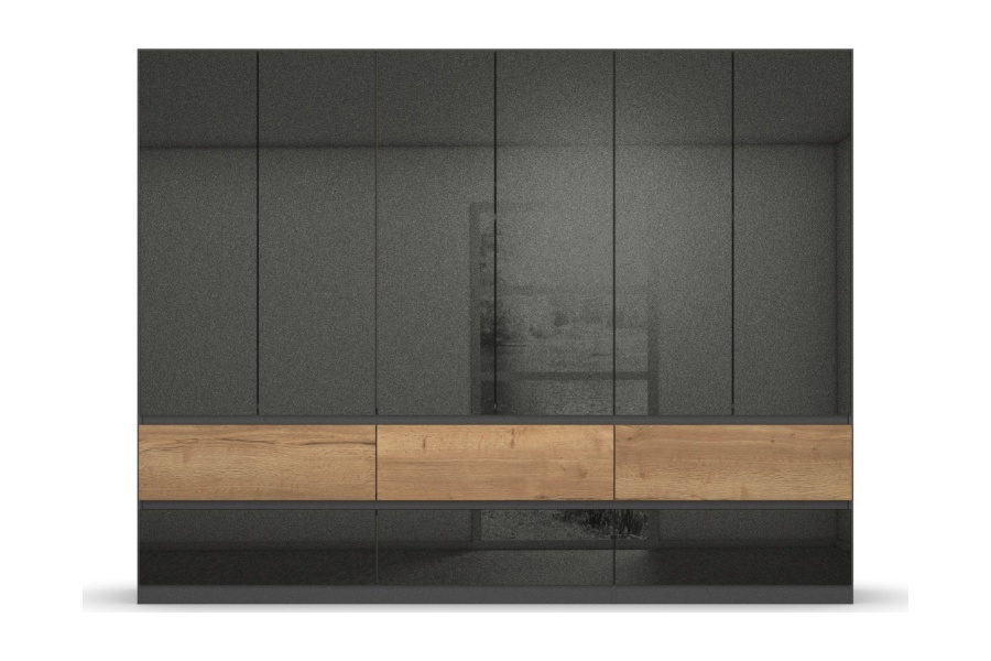 Dulap cu 6 usi cu balamale si 6 sertare WINNIPEG 271x210x56cm gri metalic/ gri lucios - halifax