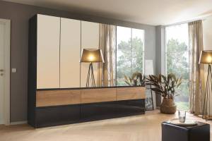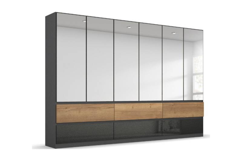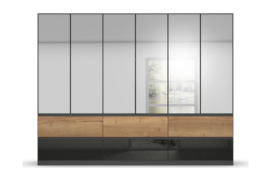 Dulap cu 6 usi cu balamale si 6 sertare WINNIPEG 271x210x56cm gri metalic/ gri lucios - halifax - oglinda