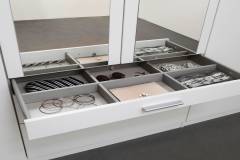 Dulapul poate fi completat cu accesorii inteligente ( sertare, polite, bare pt. umerase, inchidere soft...) care se potrivesc exact nevoilor fiecaruia.