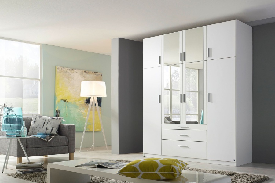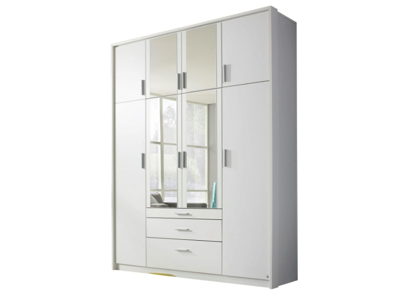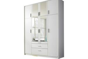 Dulap cu 8 usi cu balamale si 3 sertare HILDESHEIM 181x229x54cm alb alpin/ oglinda, manere aluminiu