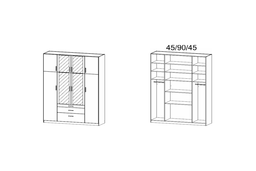 - 181 / 229 / 54 cm (8 usi + 3 sertare)