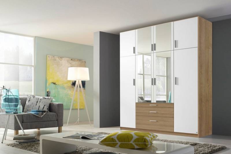 Dulap cu 8 usi cu balamale si 3 sertare HILDESHEIM EXTRA 181x229x54cm alb alpin/ sonoma - oglinda