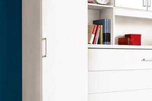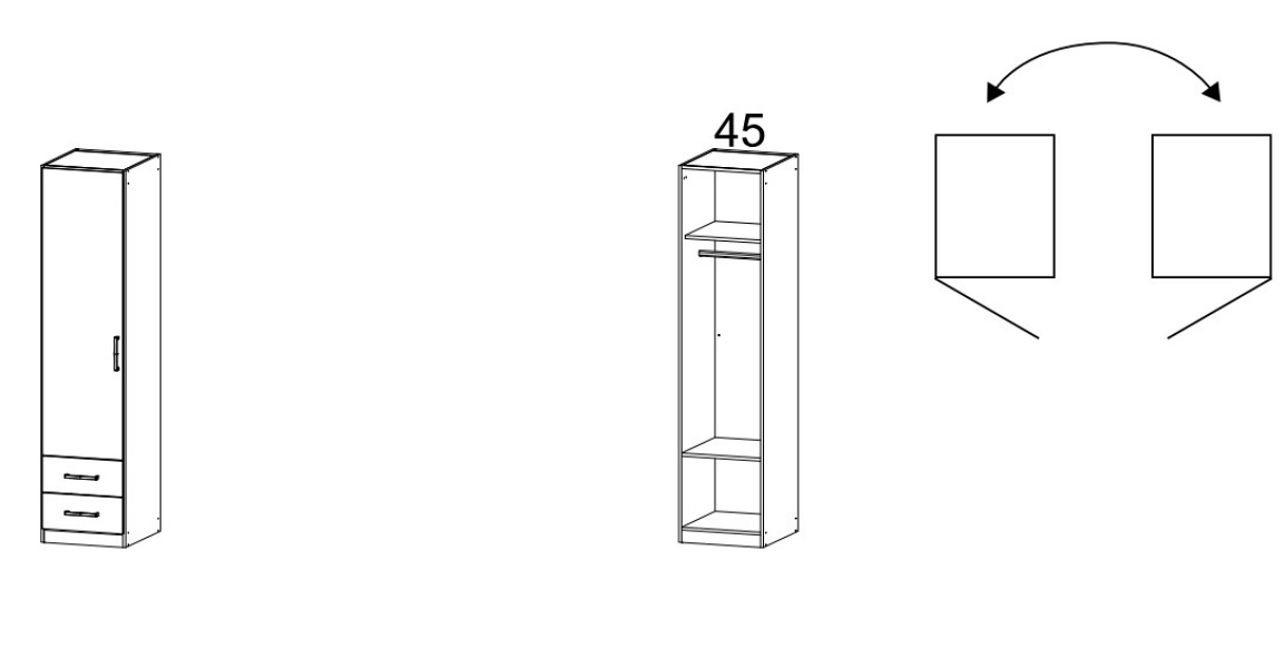 Dulap cu o usa cu balamale si 2 sertare ALBERO 47x197x54cm alb alpin, manere aluminiu