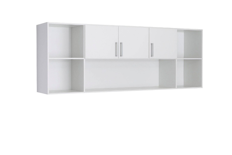 Dulap tip corp suspendat cu 3 usi cu balamale si spatii pentru depozitare ALBERO 213x82x44cm alb alpin, manere aluminiu