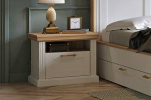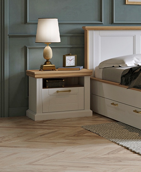 Noptiera cu 1 sertare si spatiu liber TARA WHITE 62x52x43cm alb mat/ nuc Pacific, design clasic