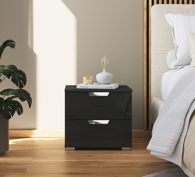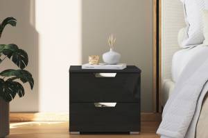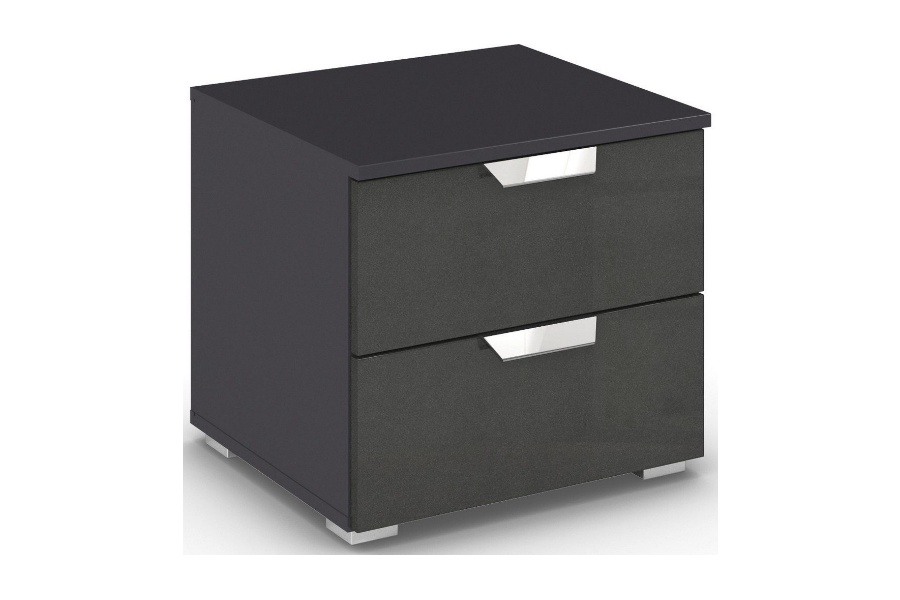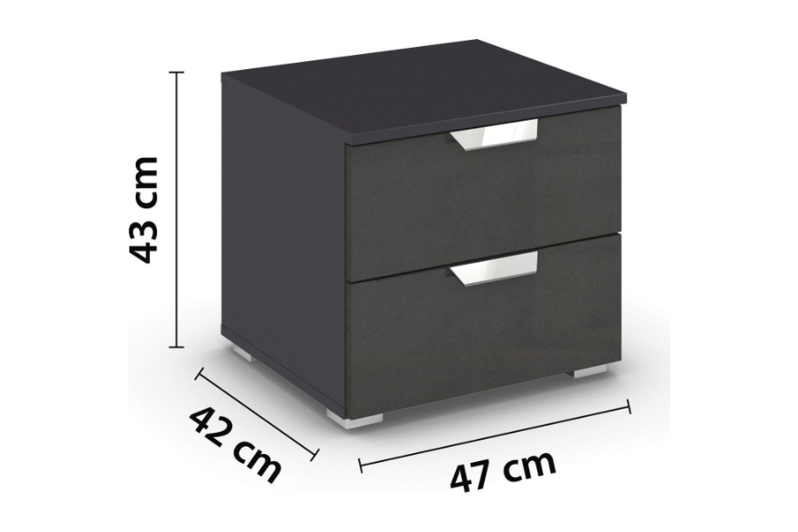 Noptiera cu 2 sertare ADITIO 40x42x42cm gri metalic/ gri metalic lucios
