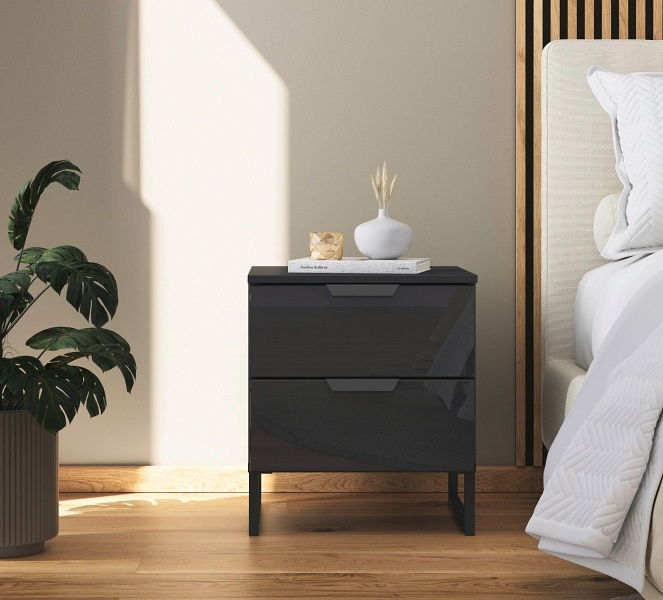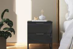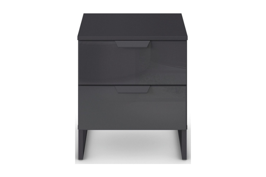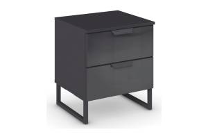 Noptiera cu 2 sertare ADITIO 40x55x42cm gri metalic/ sticla basalt