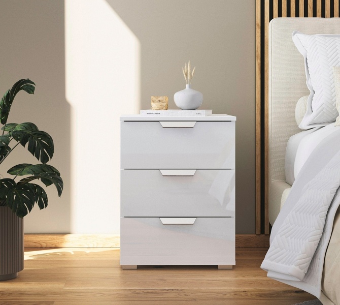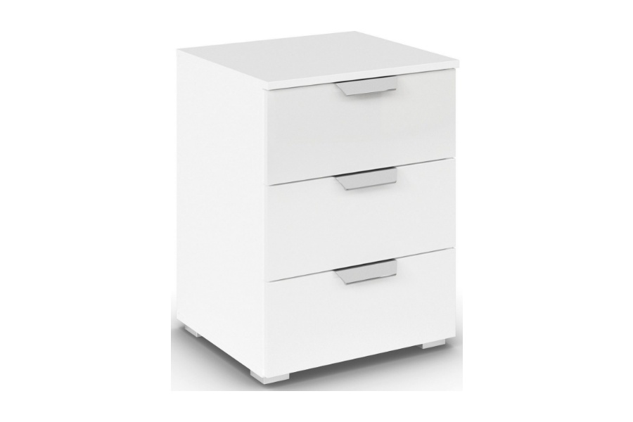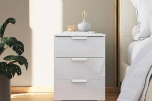 Noptiera cu 3 sertare ADITIO 40x61x42cm alb alpin/ alb lucios