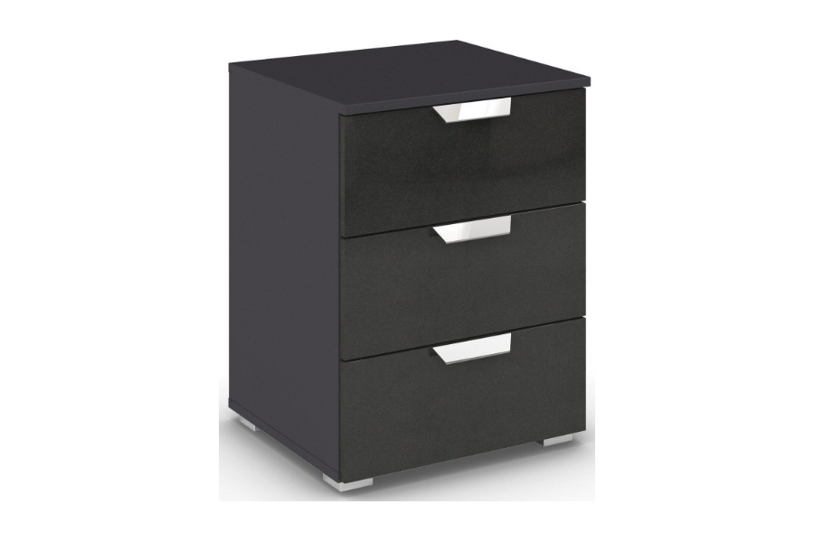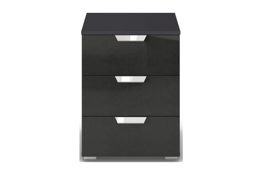 Noptiera cu 3 sertare ADITIO 40x61x42cm gri metalic/ gri metalic lucios