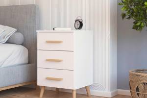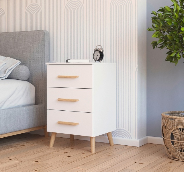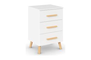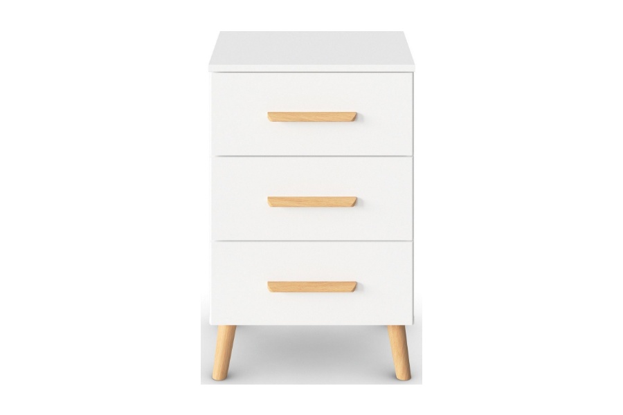 Noptiera cu 3 sertare ADITIO 40x74x42cm alb alpin, manere si picioare stejar