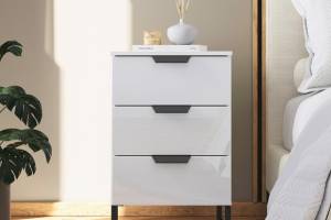 Noptiera cu 3 sertare ADITIO 40x74x42cm alb alpin/ sticla alba