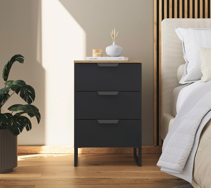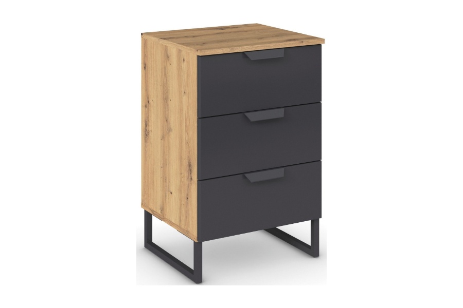 Noptiera cu 3 sertare ADITIO 40x74x42cm stejar artisan/ gri metalic