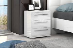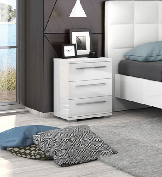 Noptiera cu 3 sertare PIANO WHITE 45x61x40cm alb lucios, picioare si manere crom