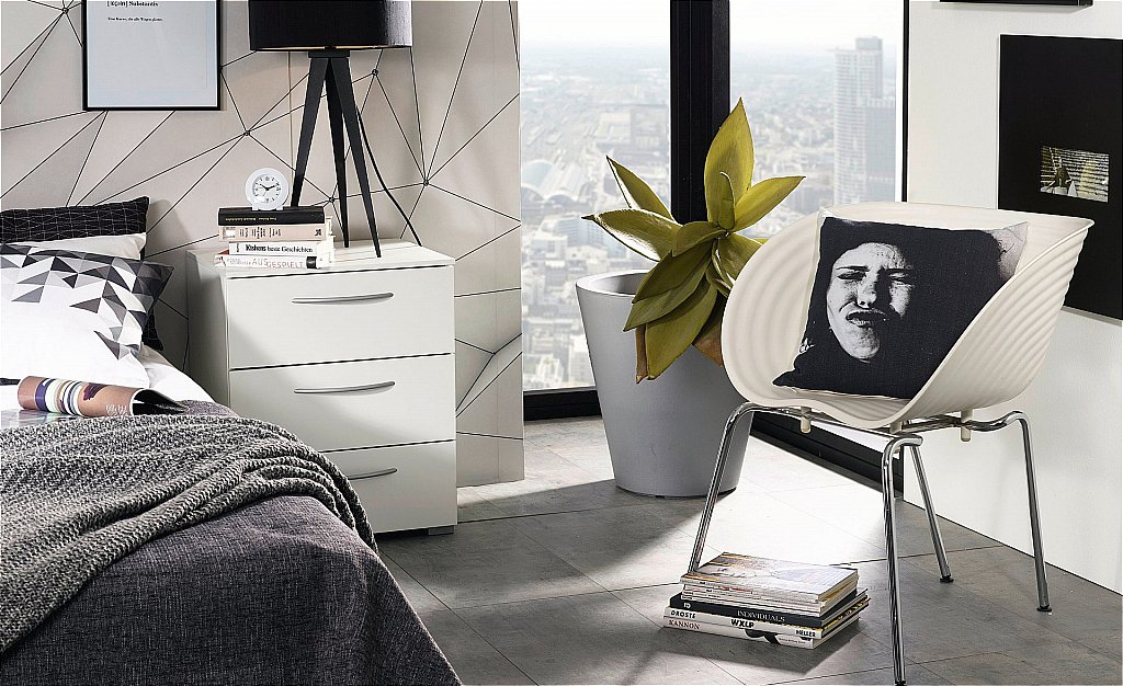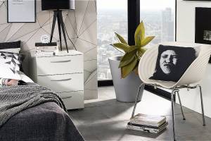 Set 2 noptiere cu 3 sertare ADITIO 40x61x42cm alb alpin/ alb lucios