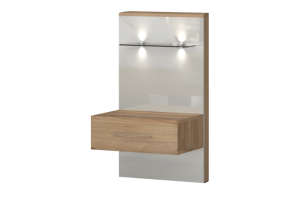 Noptiera stanga cu 1 sertar cu led GALA 56x100x47cm bej lucios/ nuc Pacific