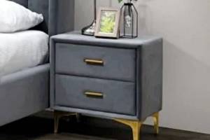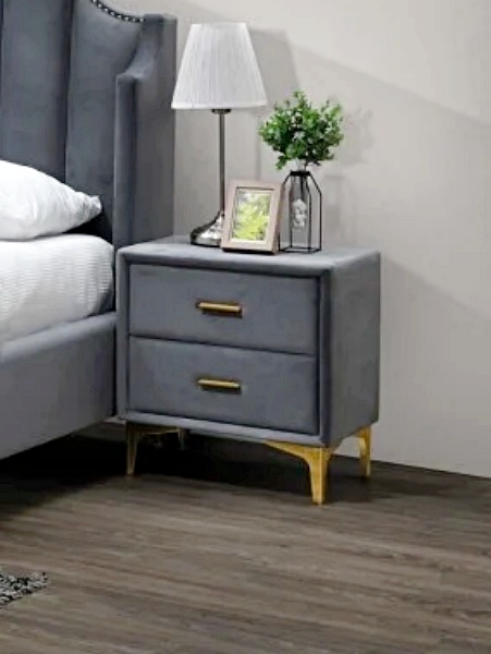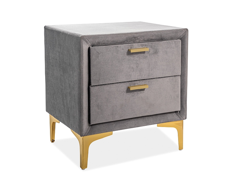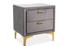 Noptiera tapitata cu 2 sertare MONAKO VELVET 53x56x36cm catifea gri, picioare si manere aurii