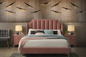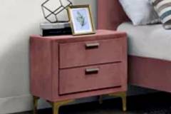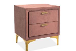 Noptiera tapitata cu 2 sertare MONAKO VELVET 53x56x36cm catifea somon pink, picioare si manere aurii
