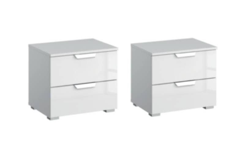 Set 2 noptiere cu 2 sertare ADITIO 40x42x42cm alb alpin/ sticla alba