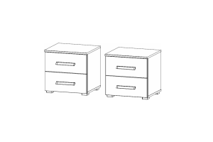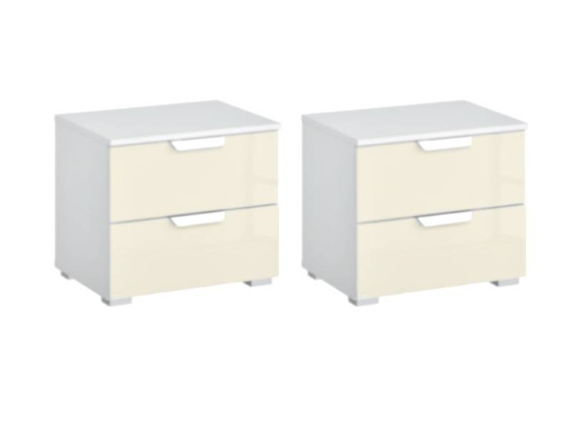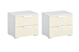 Set 2 noptiere cu 2 sertare ADITIO 47x43x42cm alb alpin/ sticla champagne